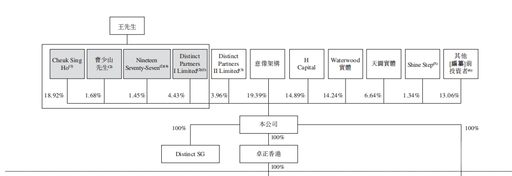 CheukSingHo持股18.92%、曹少山先生持股1.68%、张向东先生通过NineteenSeventy-Seven持股1.45%、受限制股份单位计划DistinctPartnersI,持股4.43%,创始人王志远先生为公司的最终单一最大股东,能够行使合计26.48%的投票权。