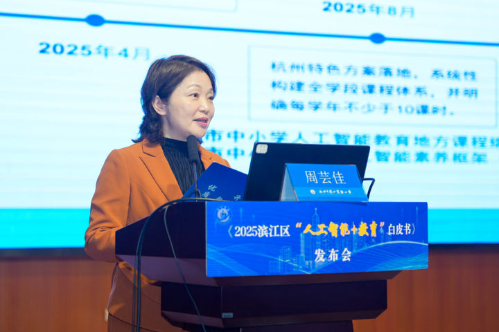 但与此同时,也有一些问题接踵而来:如何将产业优势转化为教育创新的“滨江方案”?如何避免“硬件堆砌”或“技术空砖”,让AI真正破解教育核心痛点?“这次发布的《白皮书》,就将对这些问题作系统性回应。”周局长说。
