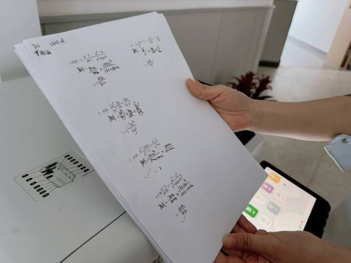 去年9月,滨江区在杭州二中附属第一学校试点投放了作业自动批改机。通过这台机器,原本一两个小时才能批改完的作业,5分钟就能搞定,而且和手改的一样,都有红色的“勾勾叉叉”,对错一目了然。