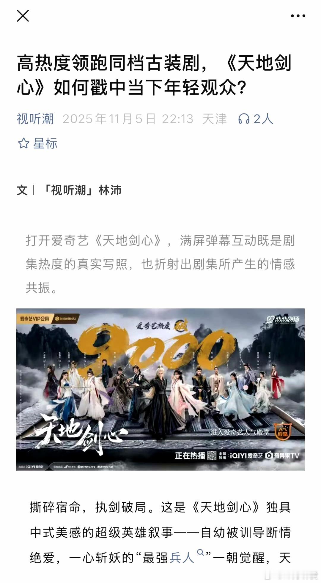 剧集天地剑心[超话]本就期待IP改编剧,天地剑心同档期领跑 完全没让人失望!霸榜各大数据平台,剧情抓心打戏绝,同档期领跑太圈粉~