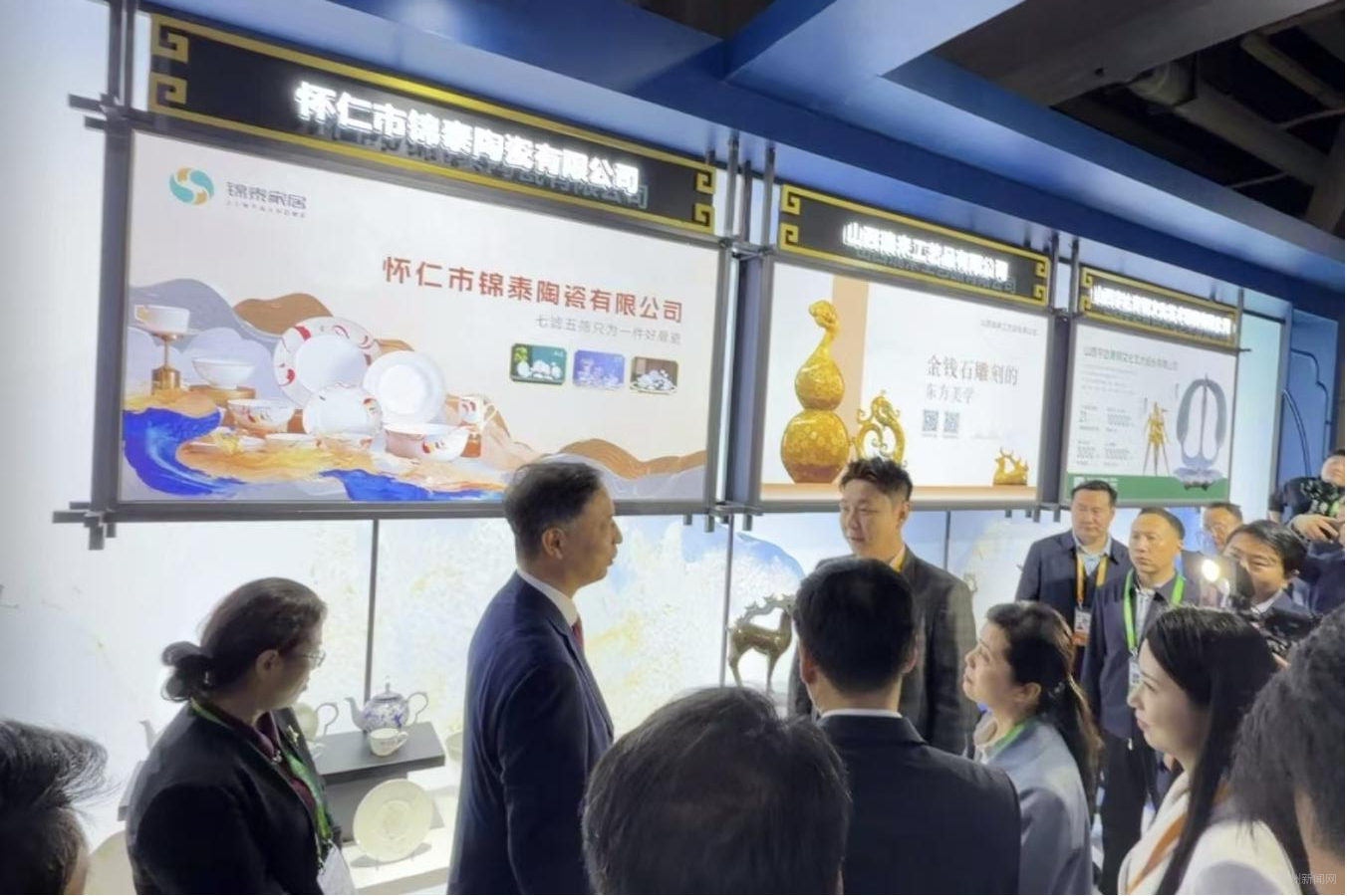 第八届进博会山西省展厅总面积405平米,我市山西祥和岭上农牧开发股份有限公司、怀仁市锦泰陶瓷股份有限公司在进博优品荟展区进行展示。5日下午,省委副书记、省长卢东亮、副省长汤志平驻足怀仁市锦泰陶瓷有限公司,仔细察看各类陶瓷产品,他强调,陶瓷企业要在设计和销售环节下足功夫,积极创新产品形态与功能,紧跟未来陶瓷产业发展方向;要多考察国内外市场,精准把握消费者需求,生产出更多受市场欢迎的优质产品,不断提升“晋字号”陶瓷的品牌影响力。企业负责人表示,将牢记省长嘱托,加强市场调研与产品创新,努力拓展国内外市场空间。