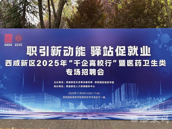 11月6月下午,由西咸新区社会事业服务局主办的2025年“千企高校行”暨高校就业服务驿站医药卫生类专场招聘会在陕西国际商贸学院成功举办。此次活动依托西咸新区高校就业服务驿站,集中释放一批优质就业岗位,着力为高校毕业生拓宽就业渠道、提升就业质量,为稳就业、促发展注入持续动能。