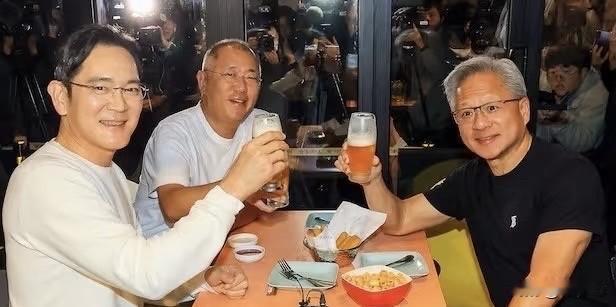 从洗碗工到AI教父‼️黄仁勋韩国行:炸鸡外交+未来之礼,顶级格局藏不住 2025年全韩国公认的AI教父非黄仁勋莫属,黄仁勋这次韩国行再次展示了什么叫顶级情商的企业家 第一,入乡随俗,炸鸡橘成全球名场面。抵达首尔后,老黄没有去五星酒店,而是直接钻进街炸鸡店。跟三星的李在镕、现代的郑逸轩坐在一起吃炸鸡喝啤酒,这场炸鸡外交成了韩国全民刷屏的名场面。他还亲自把炸鸡分的粉丝签名、合影聊天。那一刻,芯片教父变成了国民偶像,引发全网轰动。他懂得在不同文化里,用对方最熟悉的方式建立信任,这就是他的高情商,能在任何场合拉近距离。 第二,送礼有道,这次他为两位韩国财阀准备的礼物是DGX mark,他送的不只是礼物,而是未来的合作门票。别人送面子,他送未来,这背后是他构建全球AI联盟的方式。礼物无疑成了彼此的连接。美国 第三,韧性与格局被痛苦塑造出来的领导者。很多人以为他只是运气好赶上了AI浪潮。但年轻时黄仁勋在餐厅打工,洗碗、打扫厕所,他从不回避卑微的起点,因为那正是他力量的来源。这种直面困境的态度,支撑他带领英伟达从一家显卡公司成长为市值逼近5万亿美元的AI巨头。