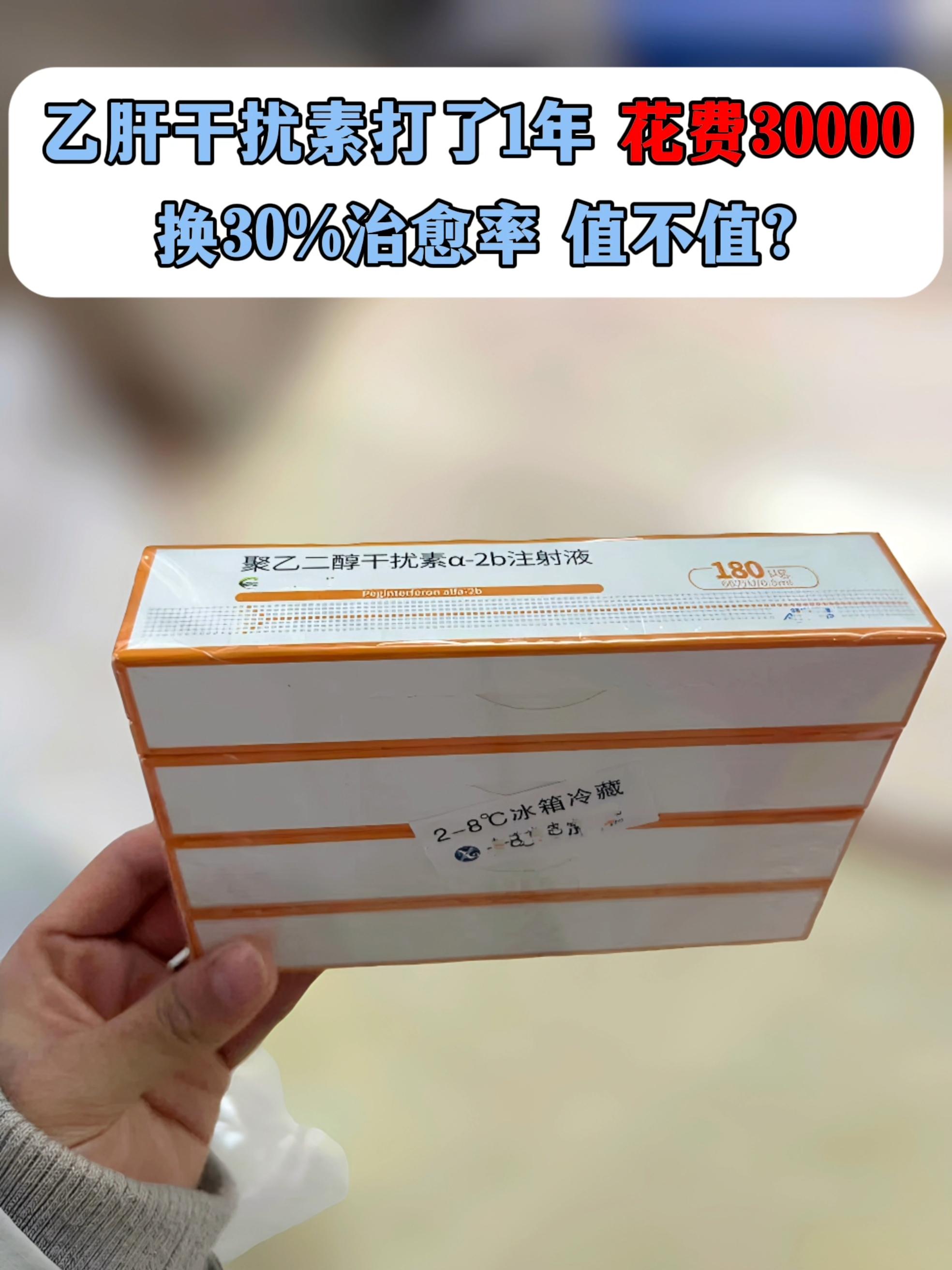 3万换30%的治愈率,值不值?转眼一年过去了,这位37岁小伙去年复查发现乙肝的表面抗原1300,于是强烈要求打干扰素。目前是打了12个月,花费30000+,还得忍受各种的副作用,好在最后转阴了!
