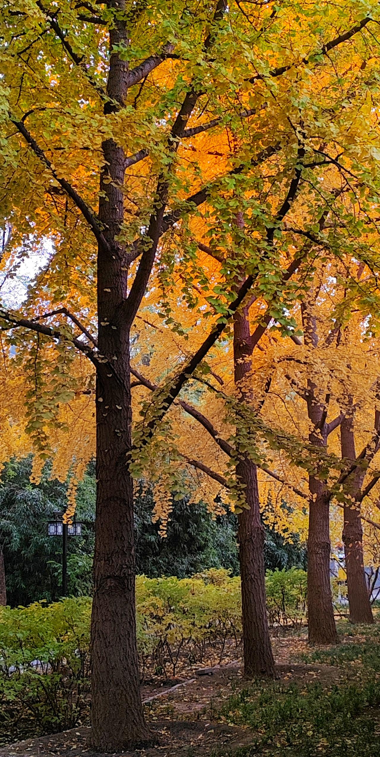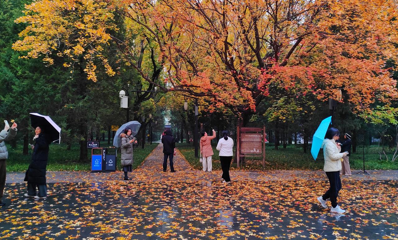 今日立冬,京城细雨绵绵!漫步在金融街、月坛公园,另有一番风情。银杏树金黄,枫叶火红。细雨中游人不撑伞,任凭细密的雨丝沾湿衣发。细雨将金融街的玻璃幕墙洗得发亮,现代建筑的冷峻线条在雨雾中柔和了许多。金黄的银杏叶让整个金融街更增添了几分灵动! 转身步入月坛公园,时间仿佛瞬间慢了下来。金黄的银杏叶被雨滴打湿,色泽愈发浓郁,如同一把把浸饱了阳光的小扇,密密地铺在青石板路上。那几株枫树更是浪漫,用一身火红迎接冬日的到来。三三两两的游人也不急切,有的驻足廊下听雨,有的举着手机,小心翼翼地避开地上的落叶,又忍不住将这份斑斓收藏进镜头。雨丝、落叶与悠然的脚步,共同织就了一幅京城立冬独有的水墨画。北京 金融街