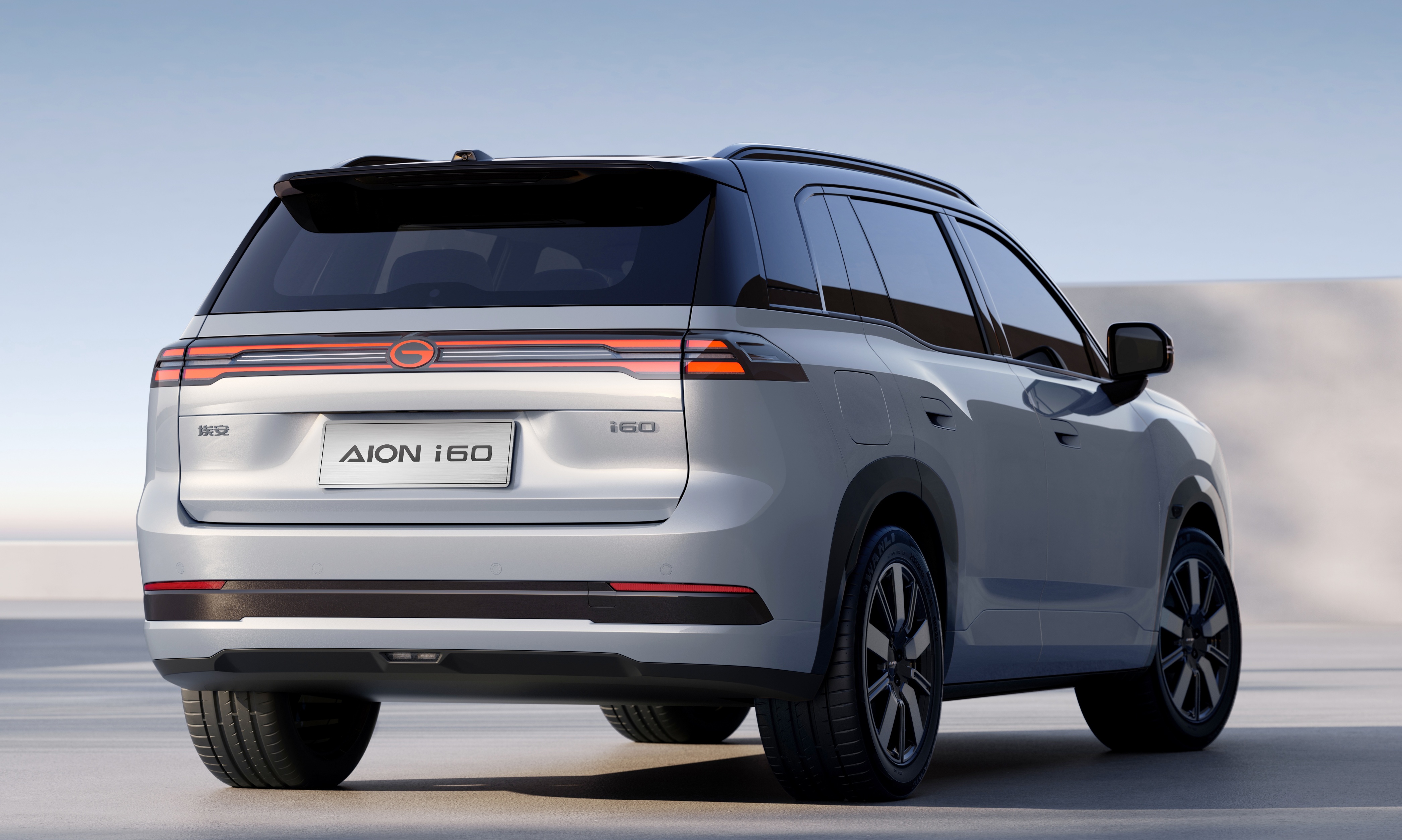 车尾部分,埃安i60采用贯穿式尾灯与双层灯带设计,中央是自发光的车标,尾灯内还隐藏辅助驾驶小蓝灯,整个尾部富有肌肉感。