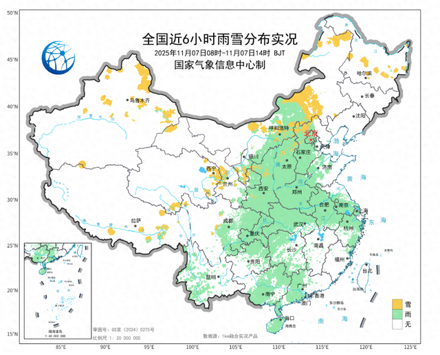 随着冷空气东移南下,今天白天,降水向东铺展波及内蒙古中部、陕西、山西、北京、河北、河南、安徽、湖北等多地。内蒙古中东部、东北地区部分地区降温明显,降幅超10℃。
