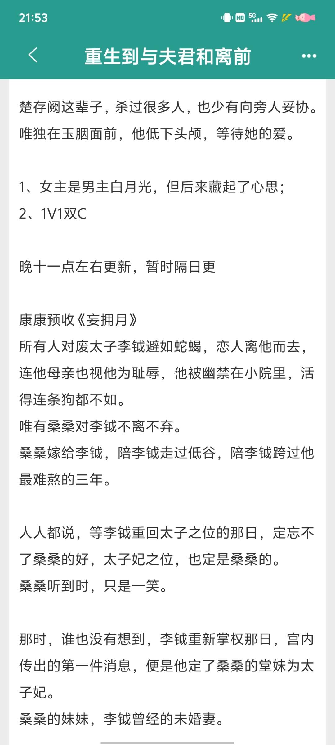《重生到与夫君和离前》by娓而 刚完结的新文,一共70章 女主是男主心里的白月光,双c,he