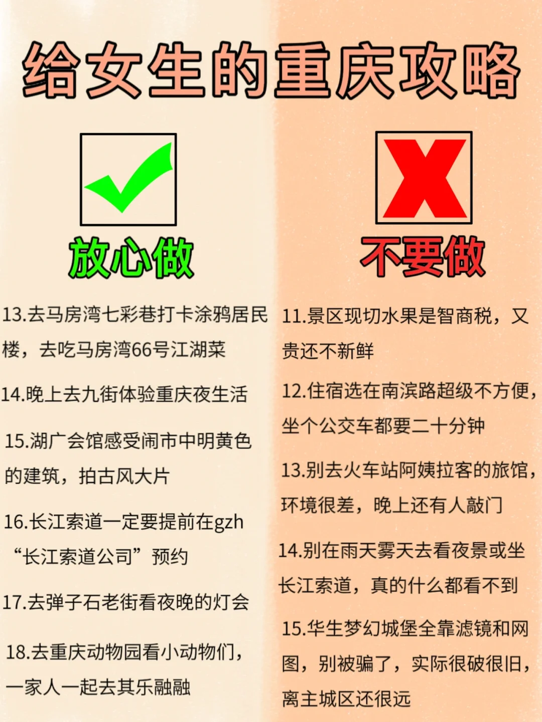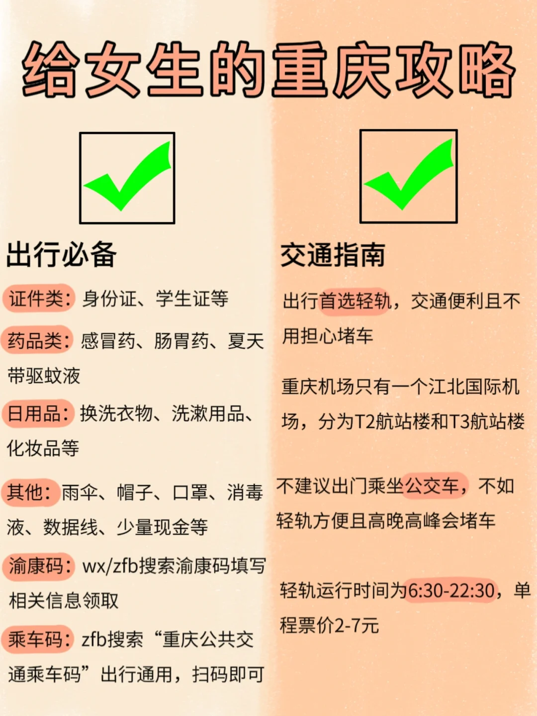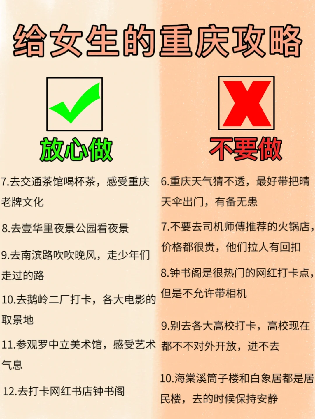 给想去重庆的女孩子们一份重庆旅游攻略,各种事项都已经整理好了✍🏻,要来重庆的女孩子们赶紧🐴住!希望大家都能在重庆玩得开心~