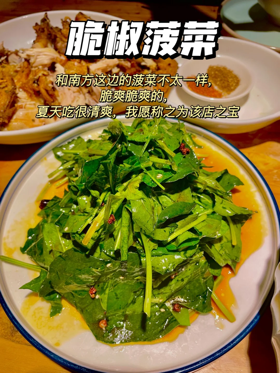 ✅脆椒菠菜:满分是十分的话,我给他打11分,太好吃了,脆爽脆爽的口感,很清爽,就是这个菠菜叶子和南方的菠菜看起来有点不一样,可能是品种不同吧