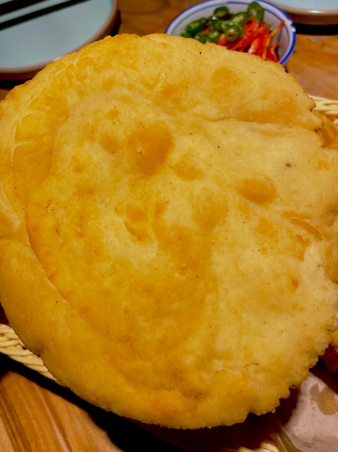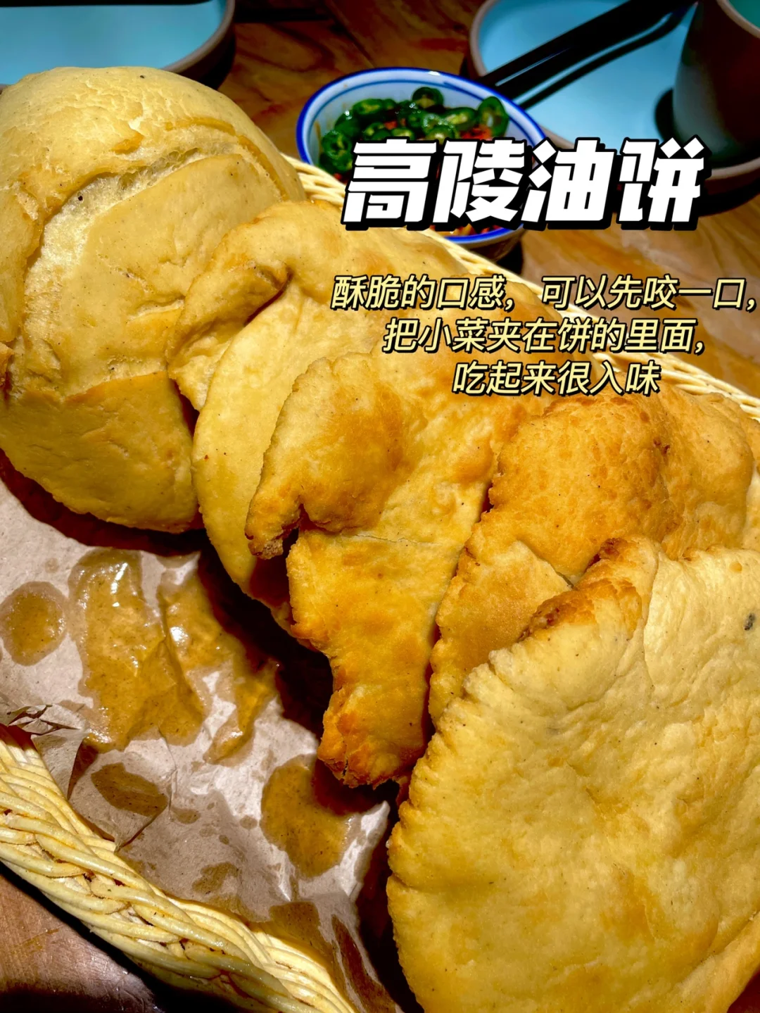✅高陵油饼:一份有五个,每个饼子很大,感觉比我的脸还大,建议不要一开始就吃,留在最后吃,因为真的很撑肚子