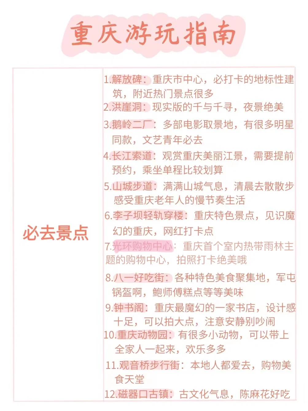暑假要和闺蜜去重庆玩,还不知道怎么玩的姐妹们请看这份攻略,为大家整理了重庆旅游攻略合集✍🏻,希望这份攻略能对你有帮助~