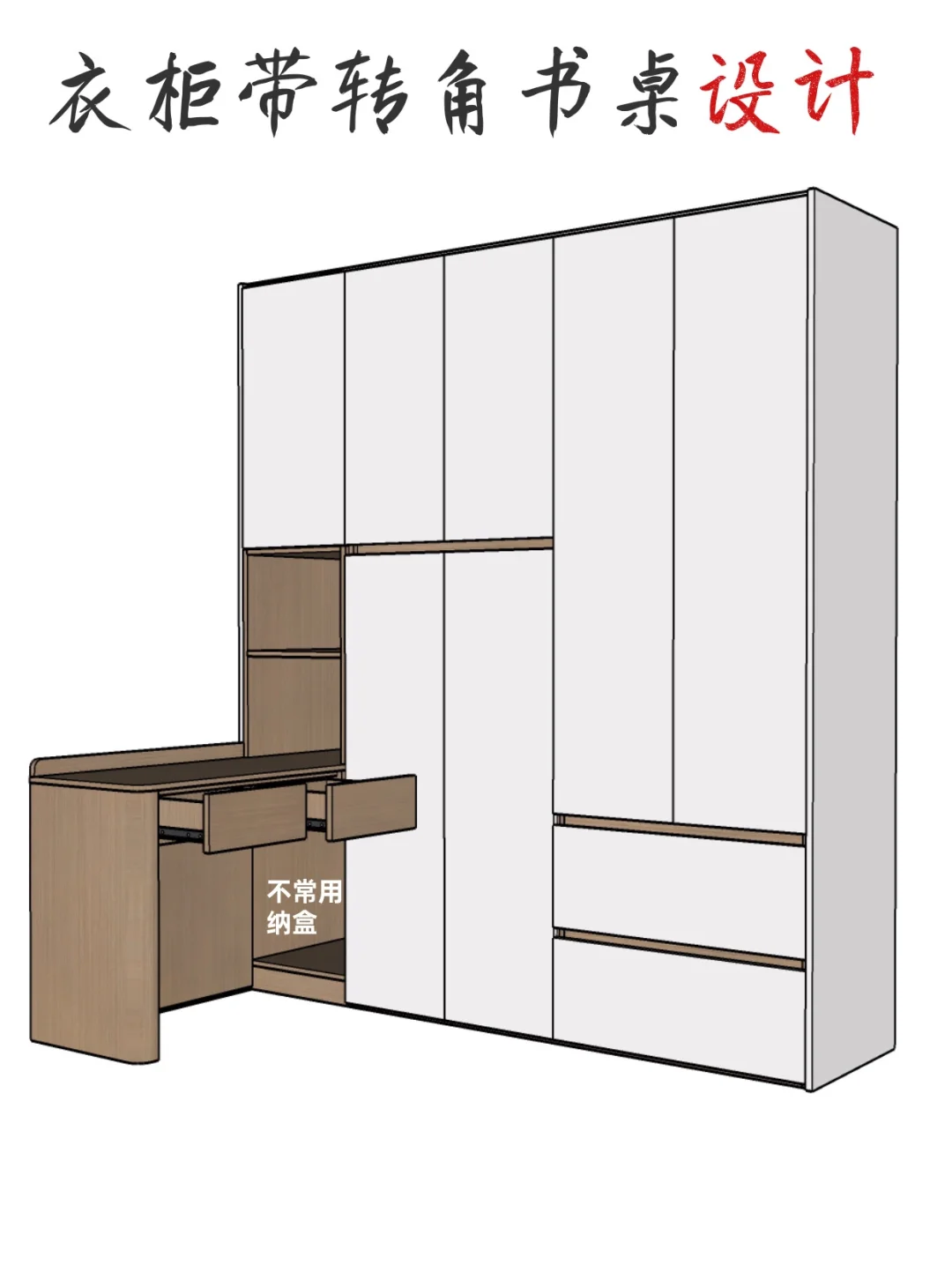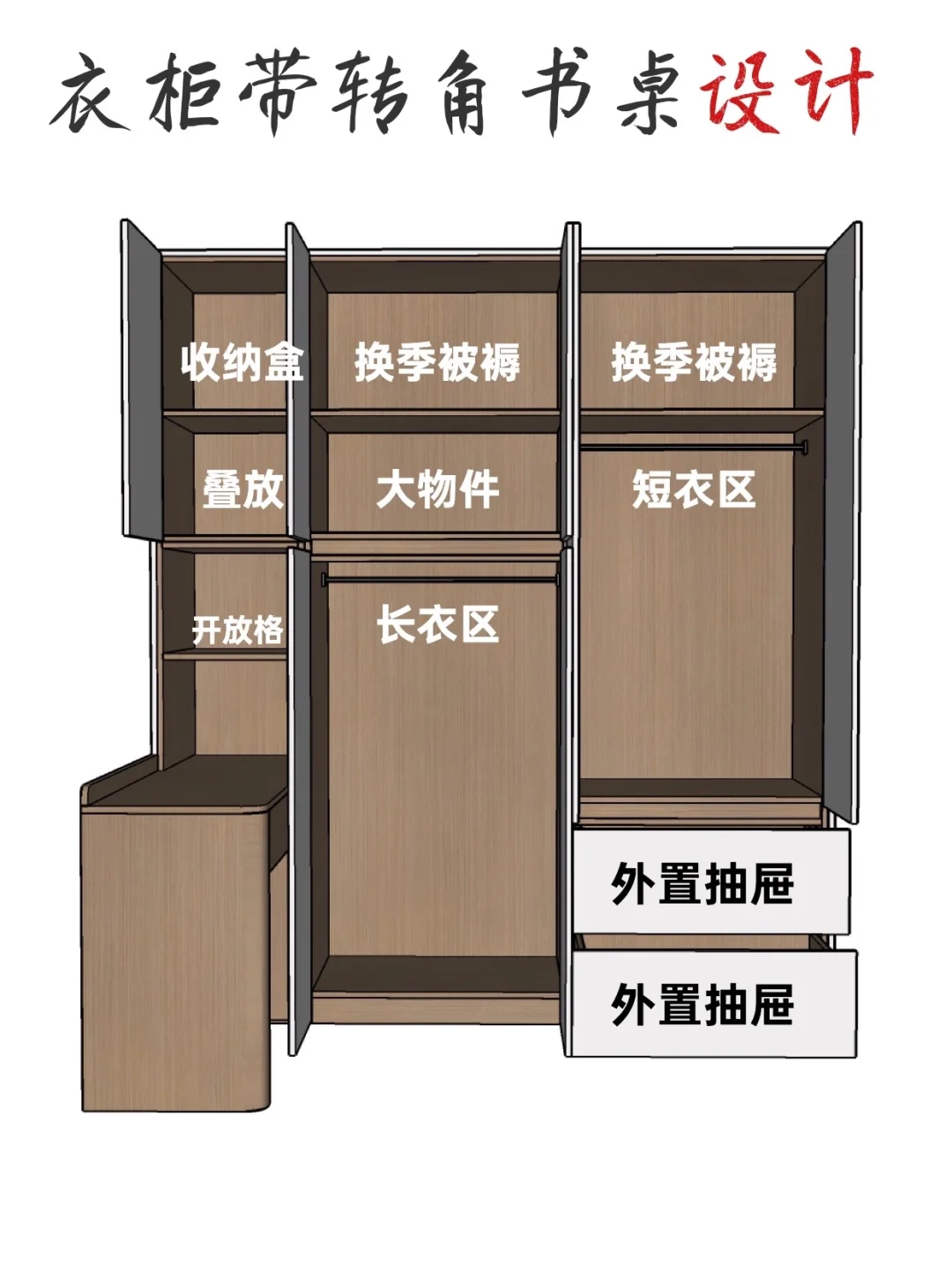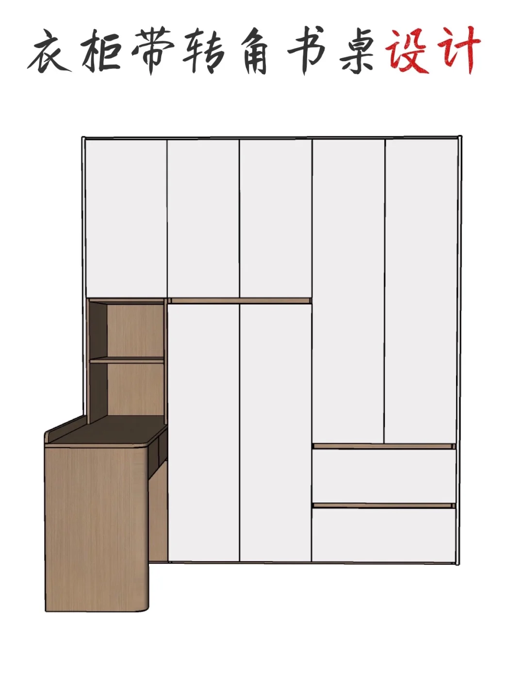 衣柜带转角书桌设计(附带详细尺寸图)
