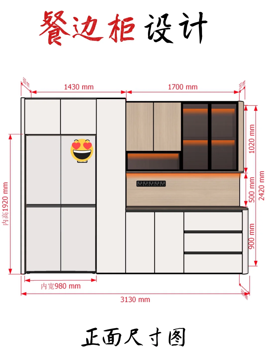 餐边柜带冰箱一体化设计(附带详细尺寸)