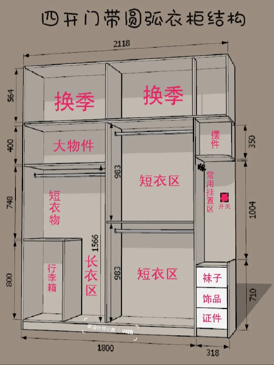 容易积累灰尘,要常于打理。好了,就分享到这了,你们说到衣柜底要不要侧边做圆弧呢?