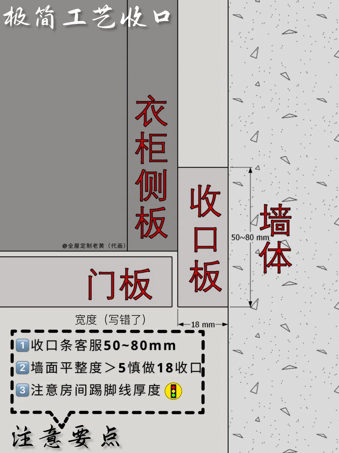 都2024了还有很多小伙伴不知道极简柜子怎么做,怕控制不好尺寸,今天精心给你们整理了一份极简工艺结构详解,请查收吧! 注意做这种工艺一定要测量好现场尺寸哦,建筑平整度要求较高,斜度过大不建议用此工艺