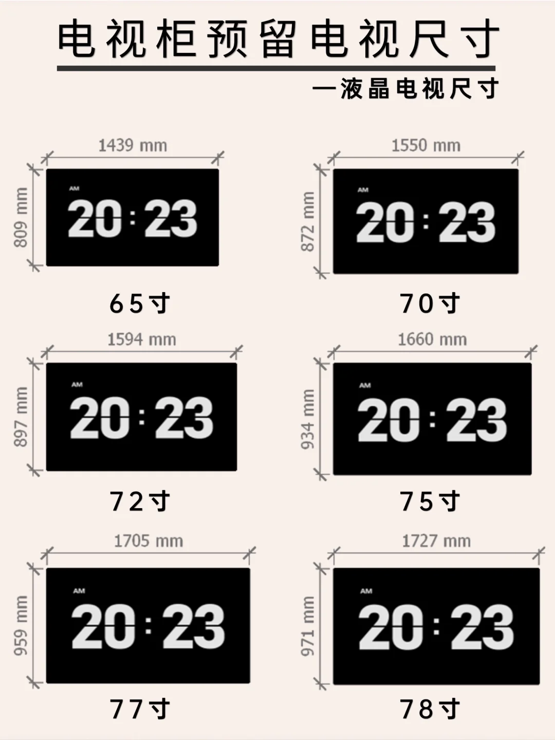 常用电视尺寸和电视柜预留尺寸(内容很干)
