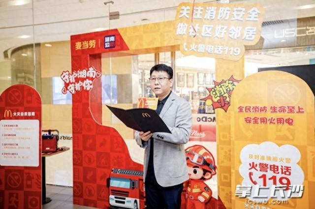 长沙晚报掌上长沙11月8日讯(全媒体记者周游通讯员贾英)麦当劳中国连续第十一年开展消防安全主题活动,近日全国超7300家麦当劳餐厅上线消防安全主题门贴,向社区传递消防安全理念。麦当劳长沙九龙仓餐厅今天举办了2025年消防宣传月启动仪式,开展了消防主题系列宣传活动,提升广大公众的消防安全意识。11月9日至22日期间,消费者光临主题餐厅并参与消防趣味问答,还可获得限量消防主题贴纸,在轻松互动中提升安全意识。