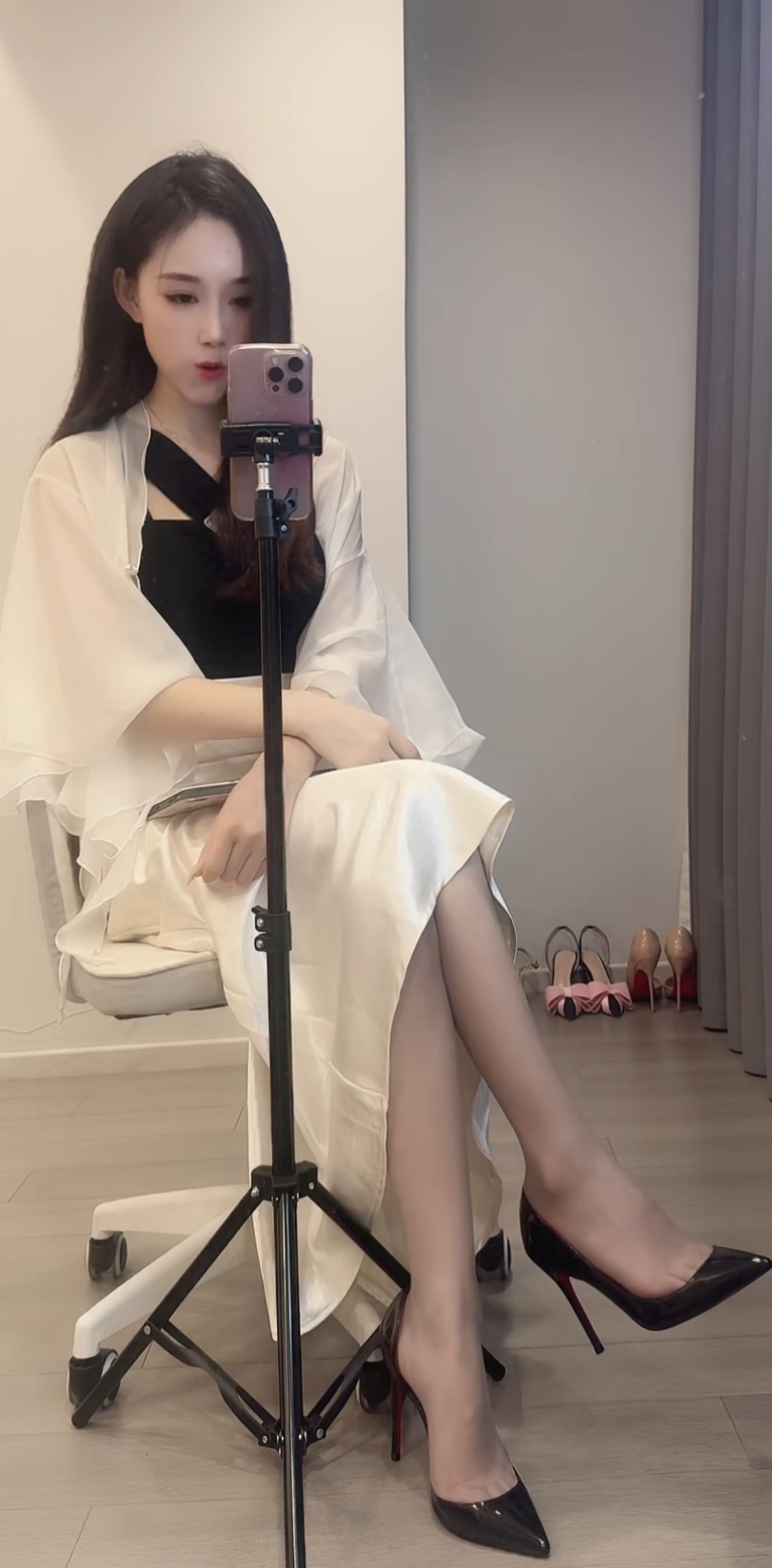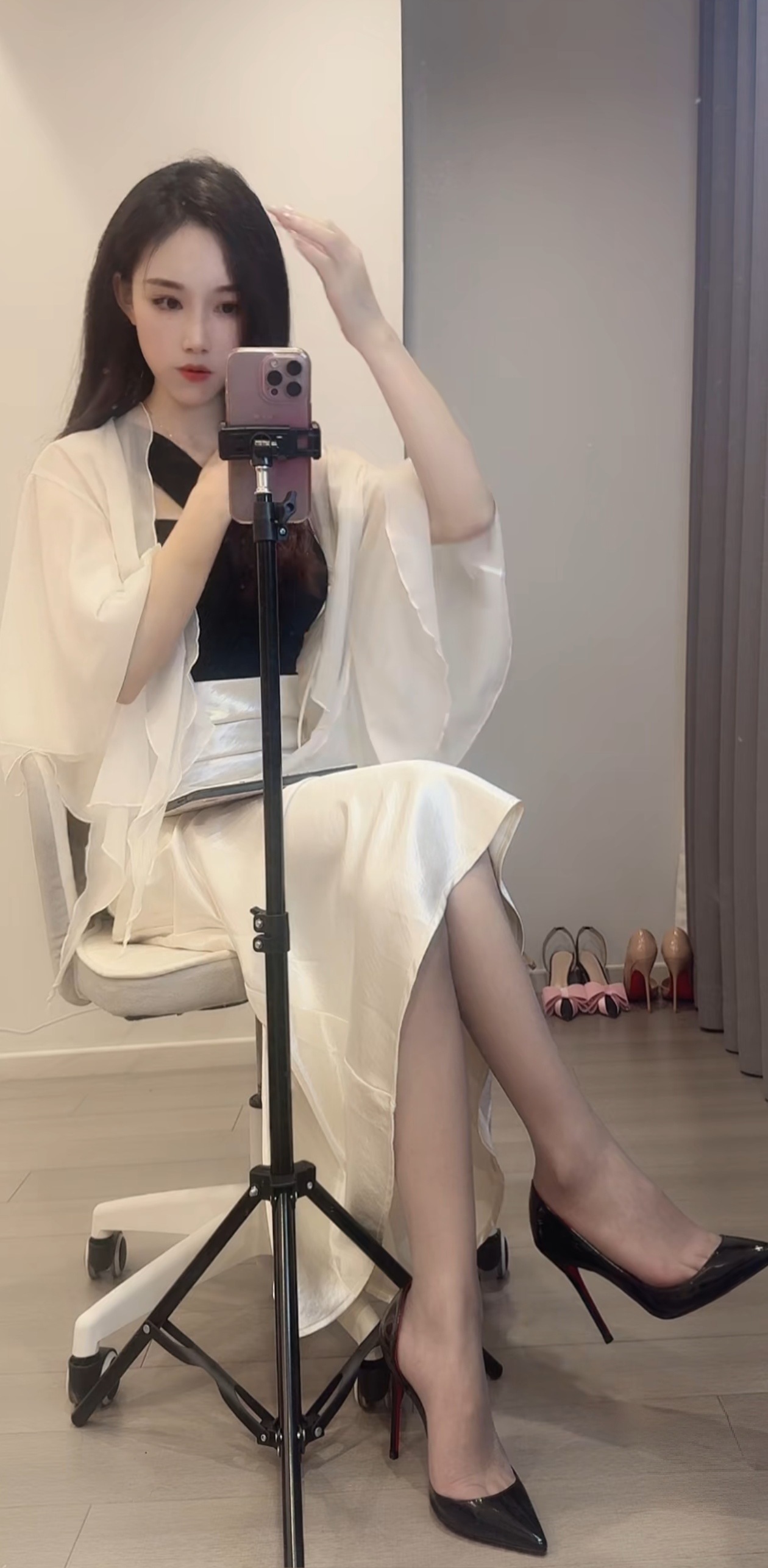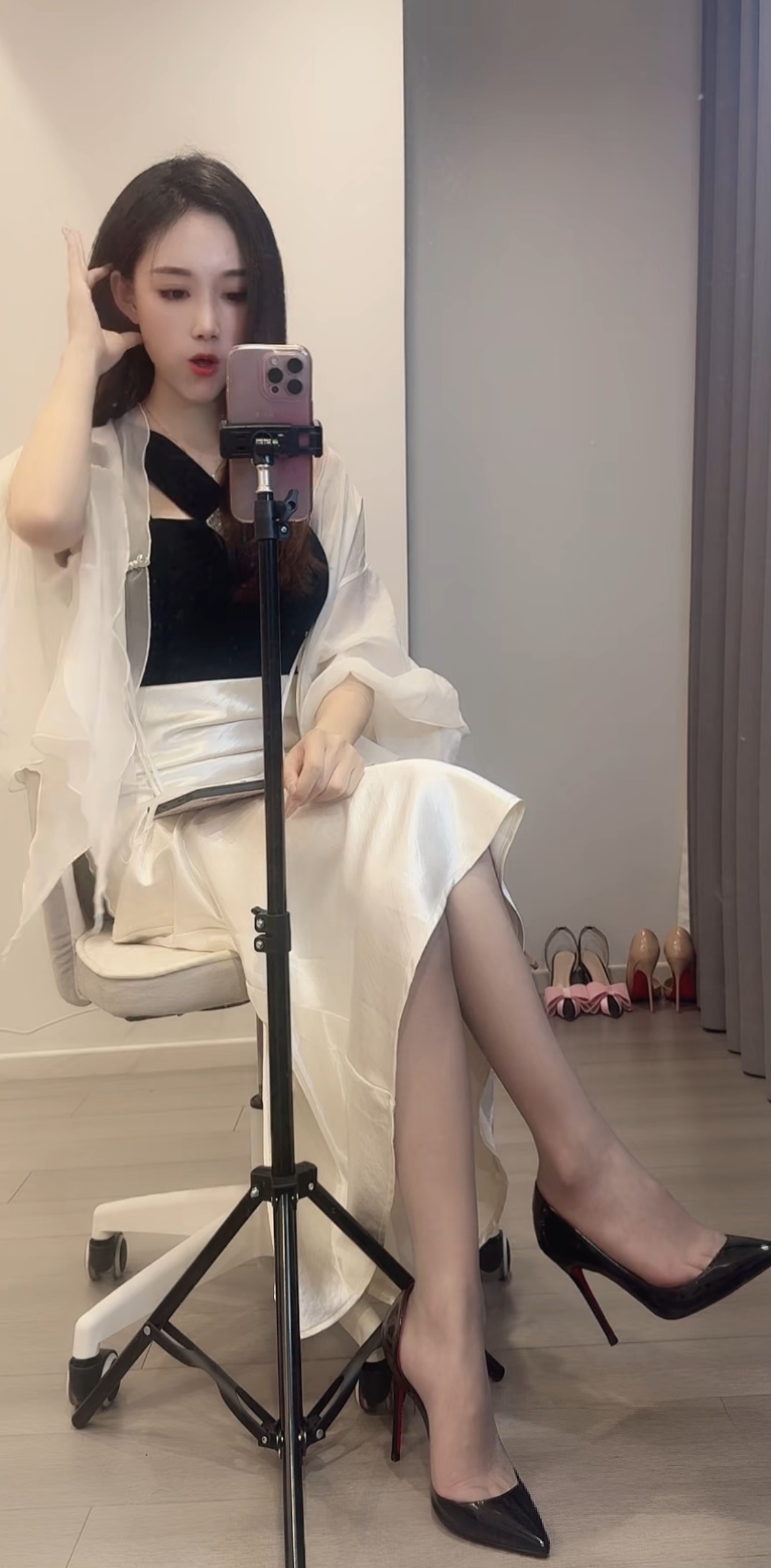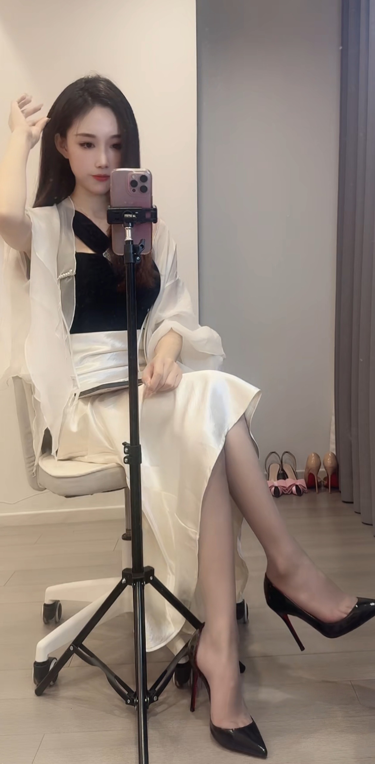 Secret❤黑丝侧空高跟鞋,指缝好美