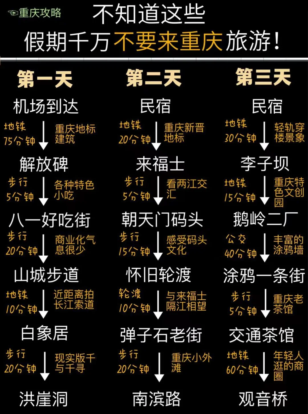 🔹Day1:机场到达→解放碑→八一好吃街→山城步道→白象居→洪崖洞