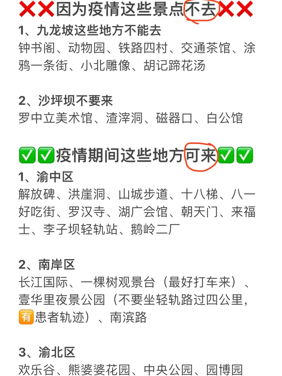 如果真的非来不可,要做好防护,除了沙坪坝、九龙坡区,其他地方也是可以去的