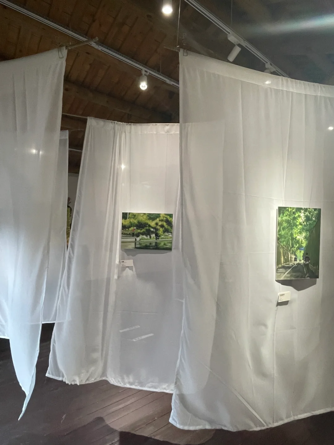 🏫环境:就是一个小房间,用白纱布巧妙的布局让整个空间看起来大了一倍,白色的窗纱浮动着观者的思绪,更能身临其境