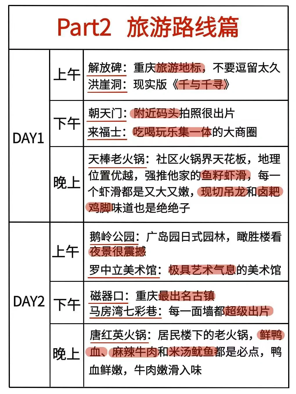 Day2:鹅岭公园→罗中立美术馆→磁器口→马房湾七彩巷→唐红英火锅