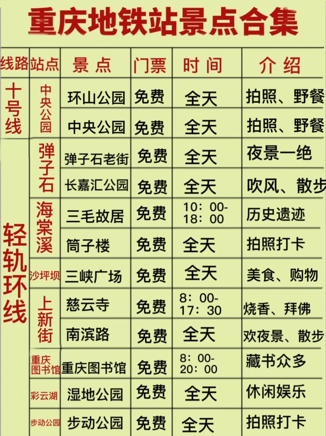 ⭕来重庆,当然要体验体验轻轨🚈,不堵车,不绕路,关键是方便便捷,里面包含了一号线、二号线、三号线、十号线、环线沿途风景合集