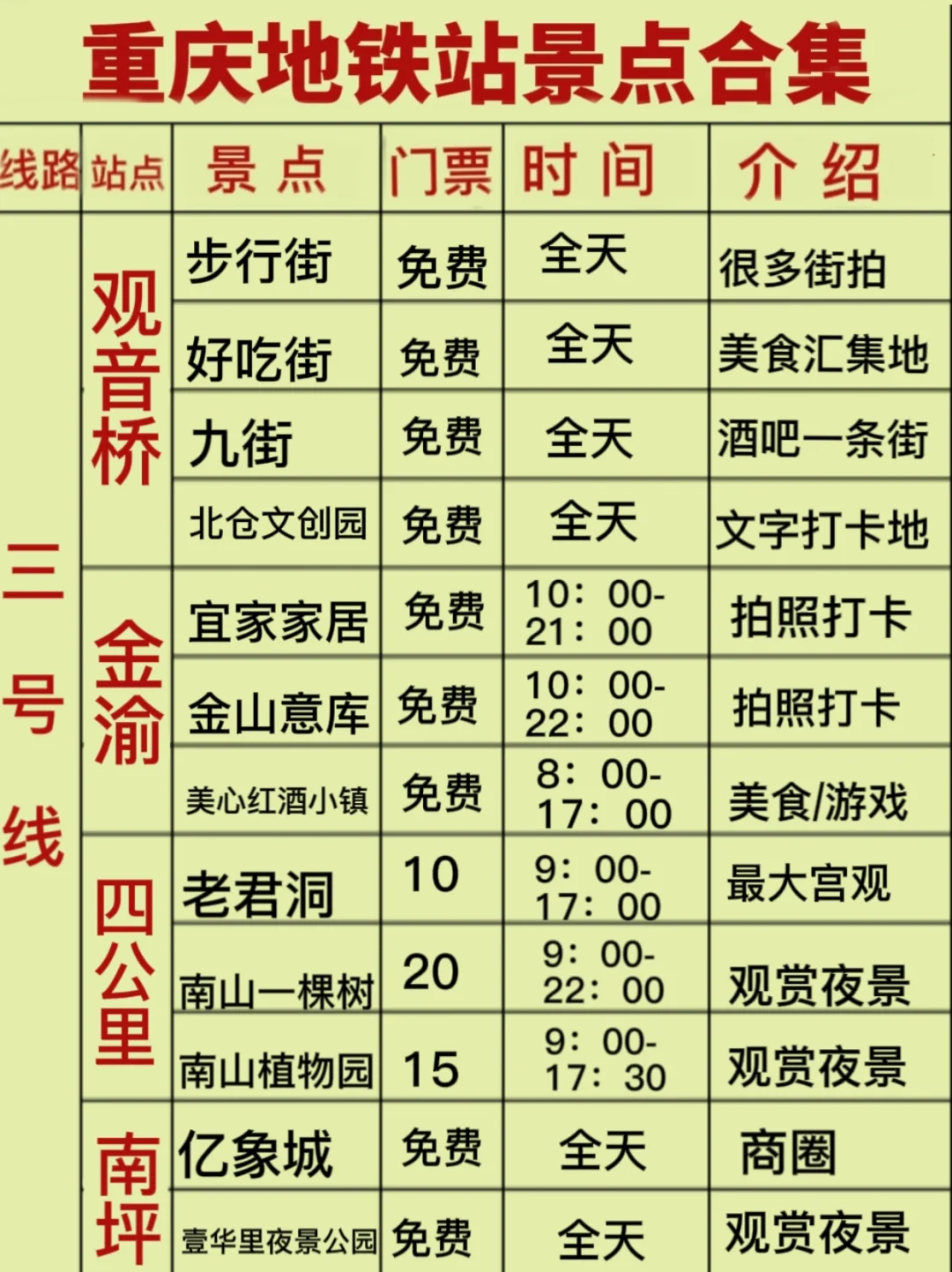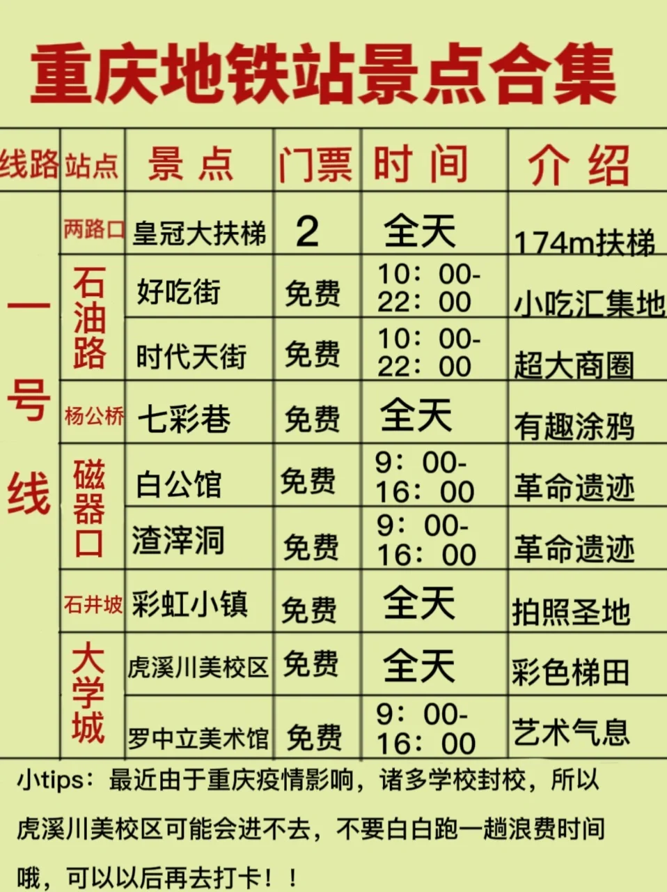 ✅一号线旅游路线