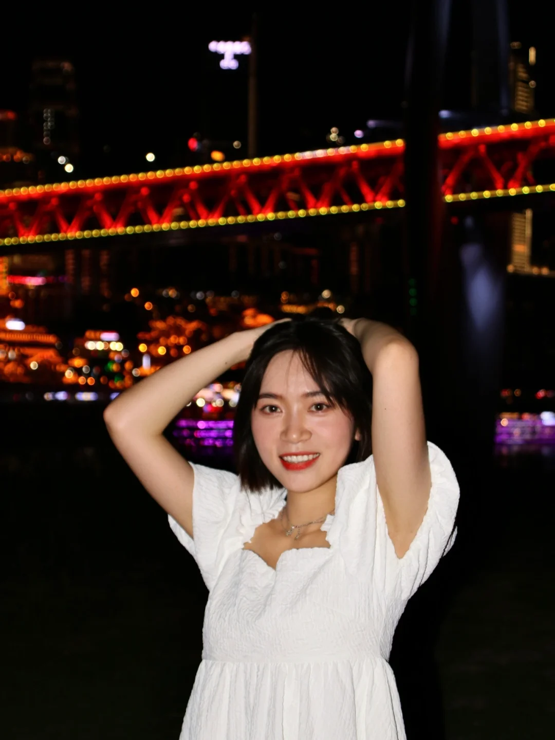 在千厮门大桥下拍完照后可以沿着桥往洪崖洞这边走,走不了多久