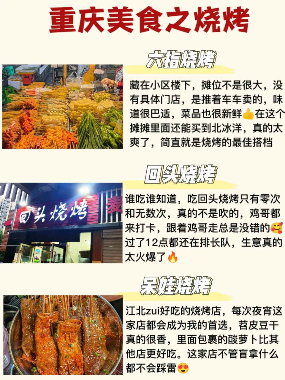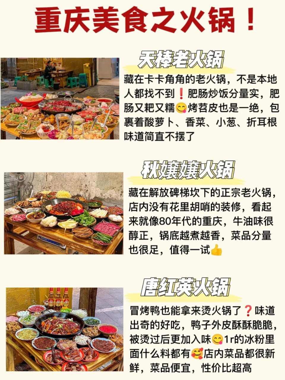 重庆美食应有尽有,除了火锅还有江湖菜、烧烤、川菜、苍蝇馆子、小吃✅这篇笔记总结了很多好吃的,不看真的会后悔😭