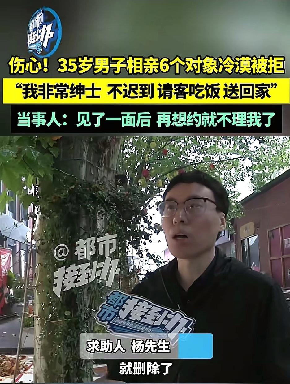 相个亲因为觉得男方不好,还要被男方追究法律责任! 能因为五六个女生不愿意,就请个节目组来,就反应了他是那种劲劲的直男,现实如果跟他生活,他应该会跟个机器人一样配合他的指令,你一点不跟着他的指令他就怀疑你是不是骗他,或者说你不尊重他,还做节目,身边人知道谁敢找他。相亲相个十个二十甚至更多,不是挺正常,那看一个不合适,看一个不合适,非要成嘛,说明缘分不到!再等等,总会遇到一个一眼就喜欢的人! 说他没有情商不会来事,他说对他造成人格伤害了,还要追求法律责任,我感觉他爱钻牛角尖,跟他在一起,会因为各种鸡毛蒜皮的小事闹矛盾!毕竟生活不是做数学题,可以清楚的分对错。
