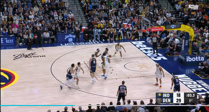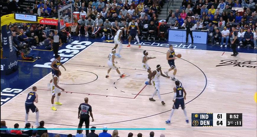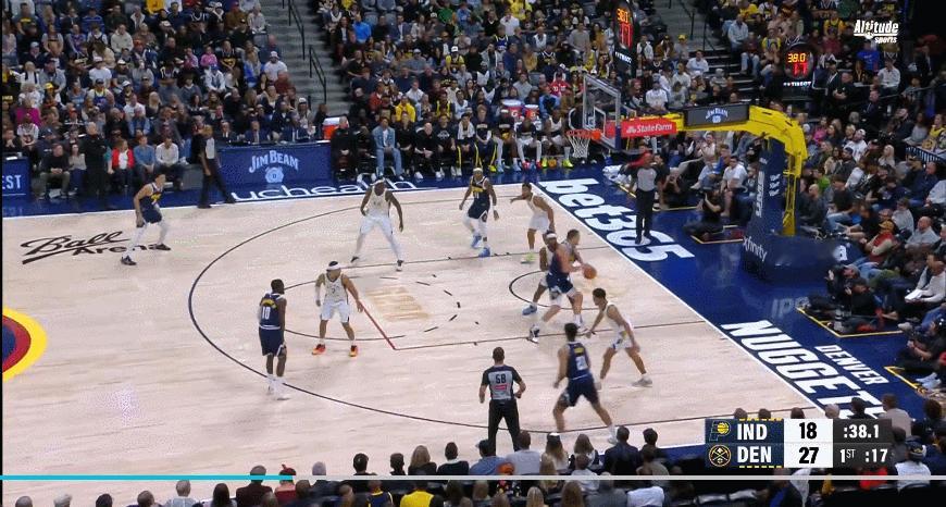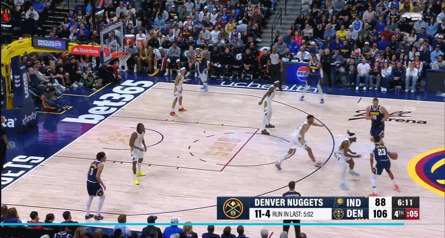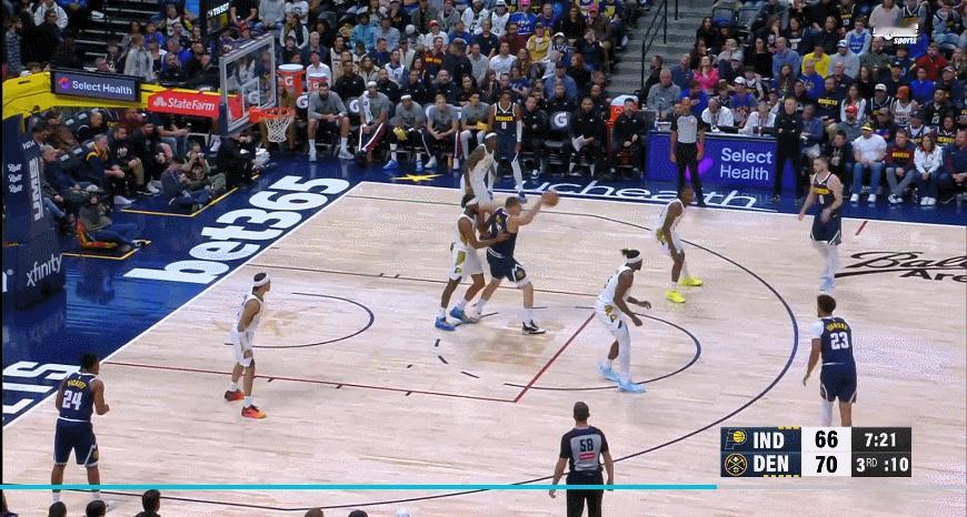 掘金今天大胜步行者14分,约基奇老师(Nikola Jokić”)闲庭信步拿下3