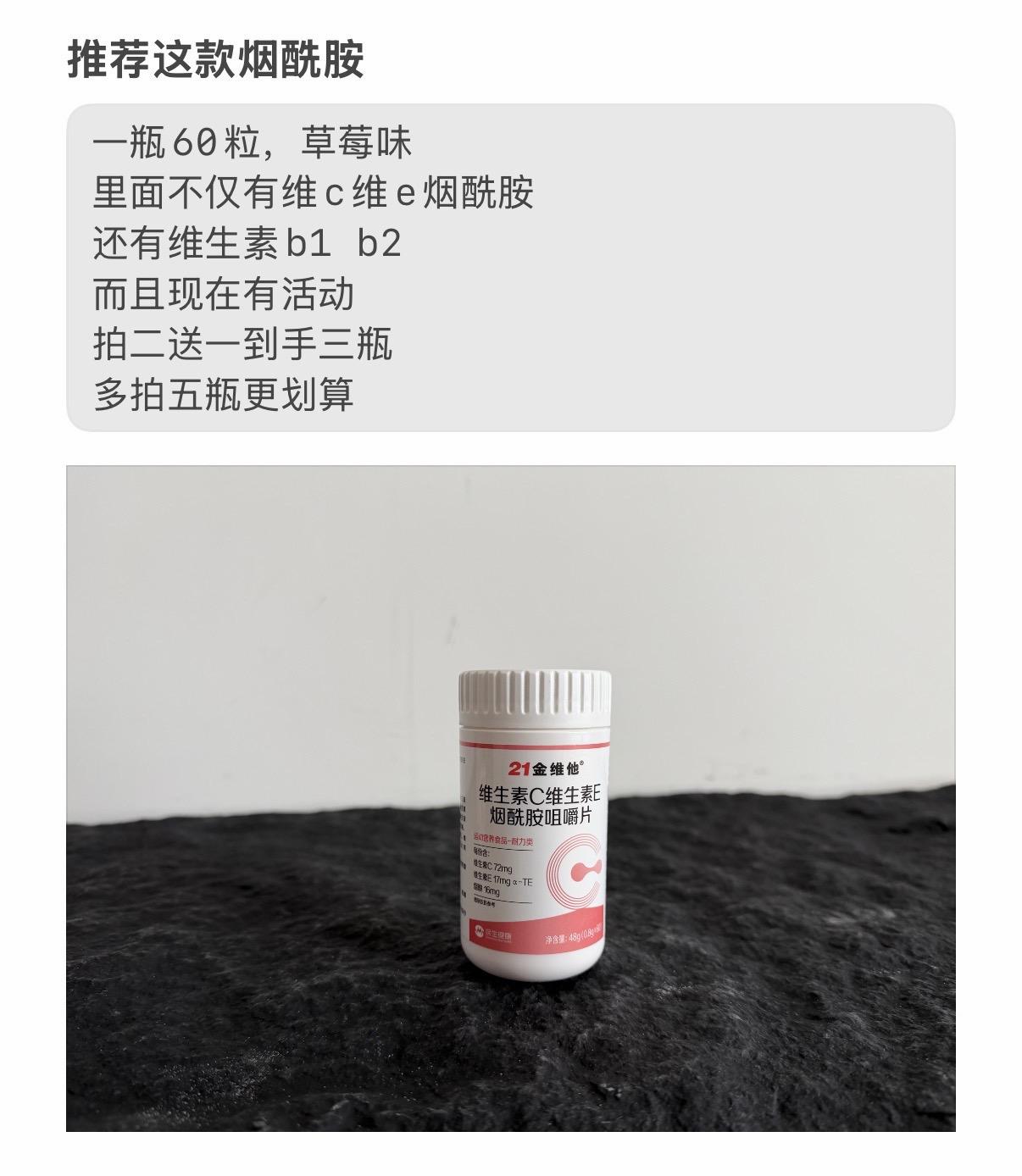 烟酰胺到货了。一瓶60粒,多瓶还有满减,太合适了