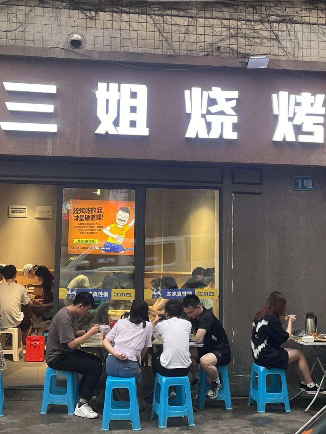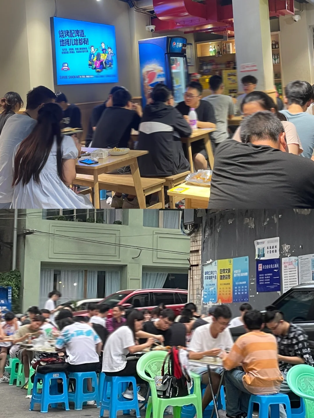 如果想去这家烧烤🍢店吃,最好错过饭点去,一到饭点周围的学生蜂拥而至,店里店外都坐满了人👩👩👧👧,最少也要等上一个小时