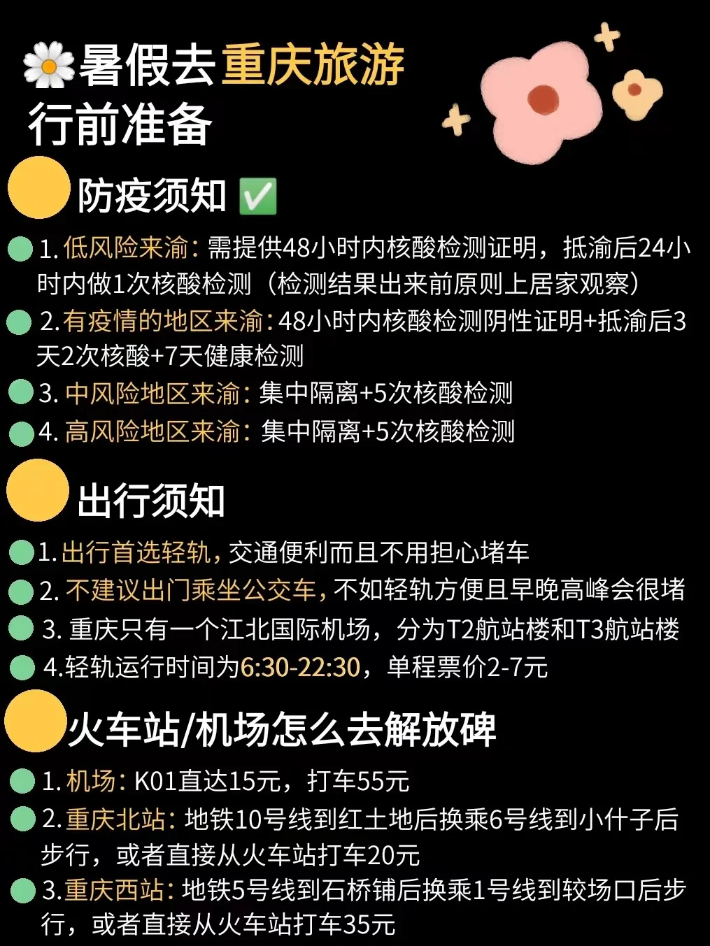 🔸有疫情城市来渝:48小时核酸检测阴性证明+抵渝后3天2次核酸+7天健康监测