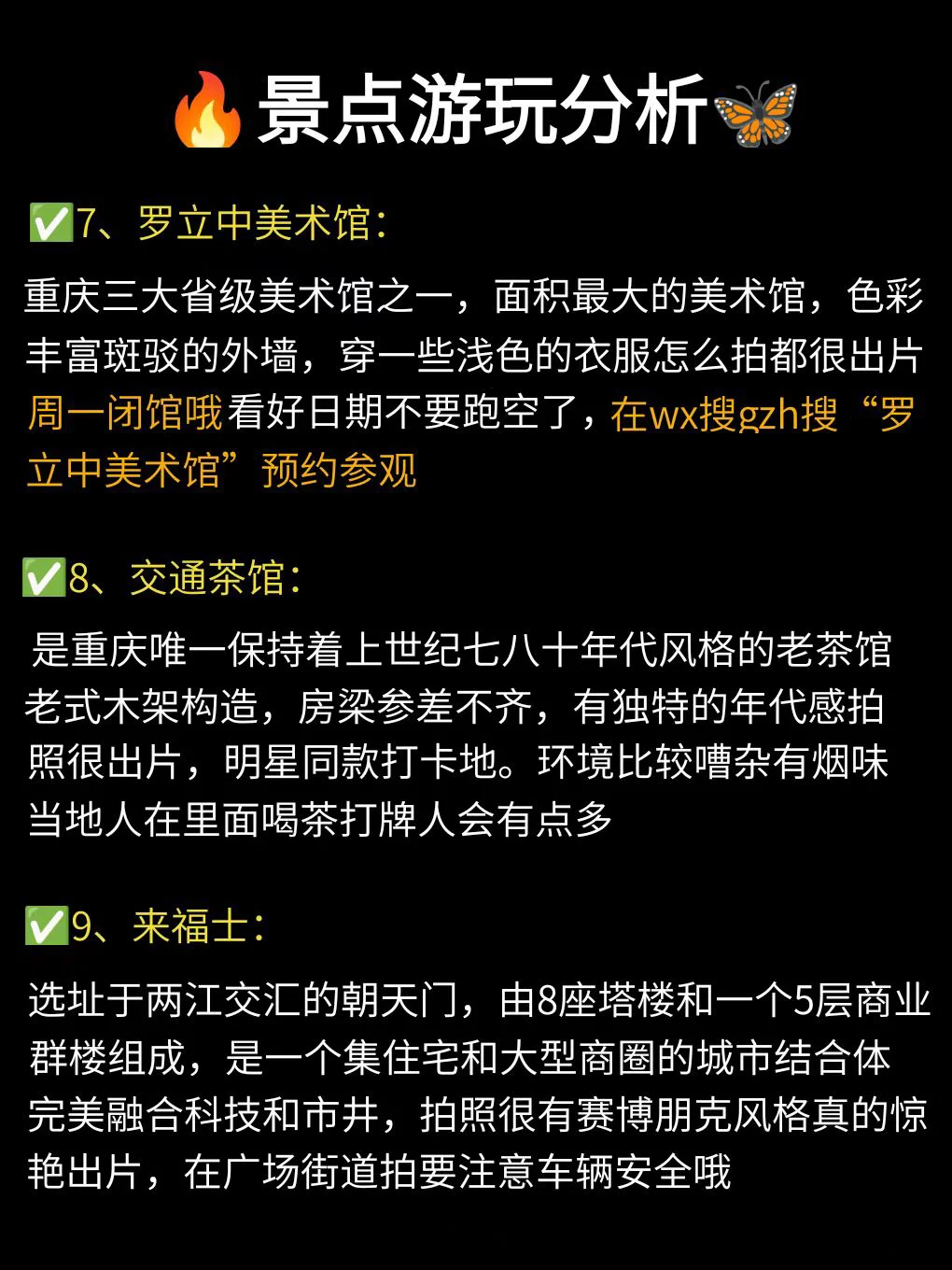 5⃣️像长江索道、湖广会馆、罗中立美术馆等等这些一定要提前预约