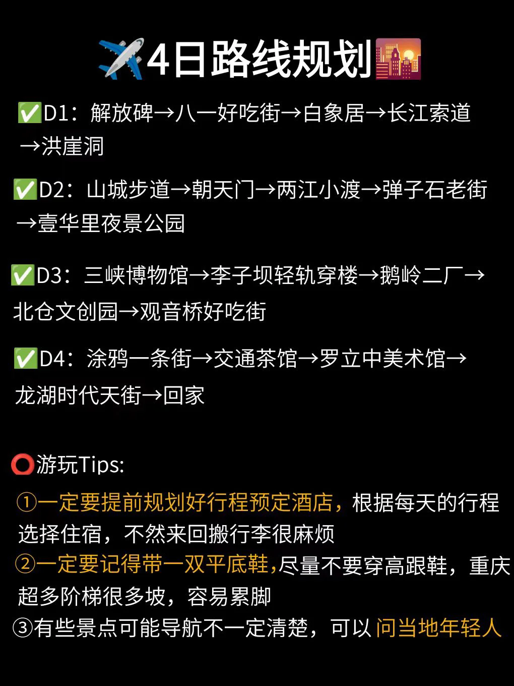 3⃣️来重庆之前一定要提前预定好酒店,出行前最好穿平底鞋,做好防晒工作