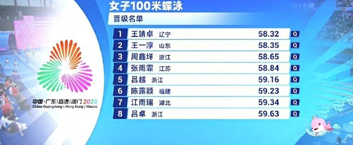 直播吧11月10日讯全运会女子100米蝶泳预赛第4组,张雨霏游出58秒84的成绩,以小组第一晋级半决赛。