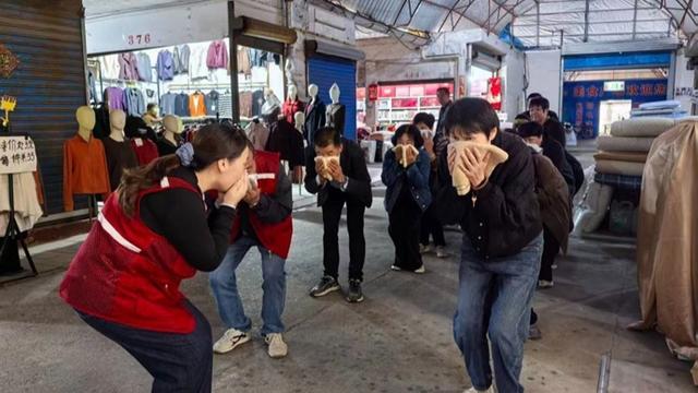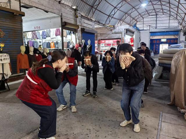 随后,商户们实操体验了灭火器的使用方法,并在工作人员的引导下,弯腰低姿、捂住口鼻,快速有序撤离至安全区域,进行了逃生演练。