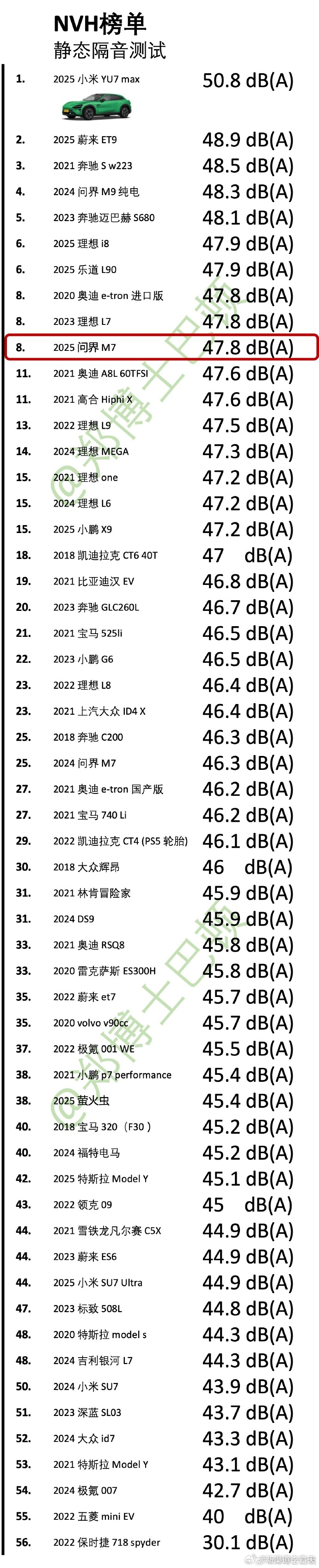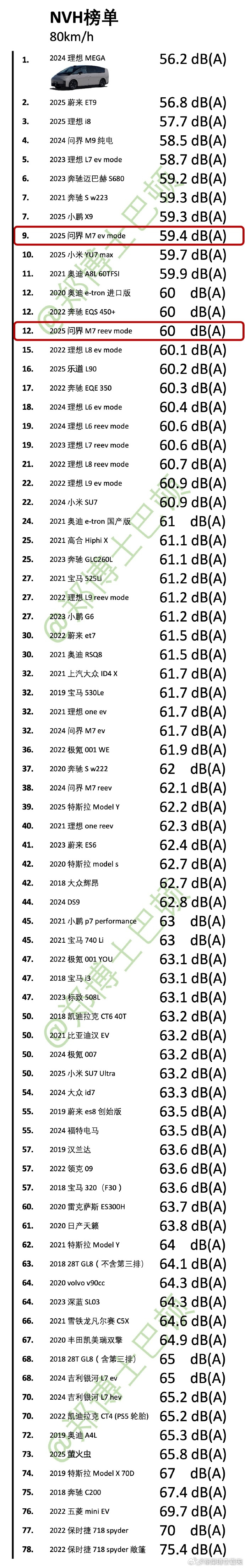NVH 数据中心第 62 期更了M7的表现,有两个亮点值得关注: