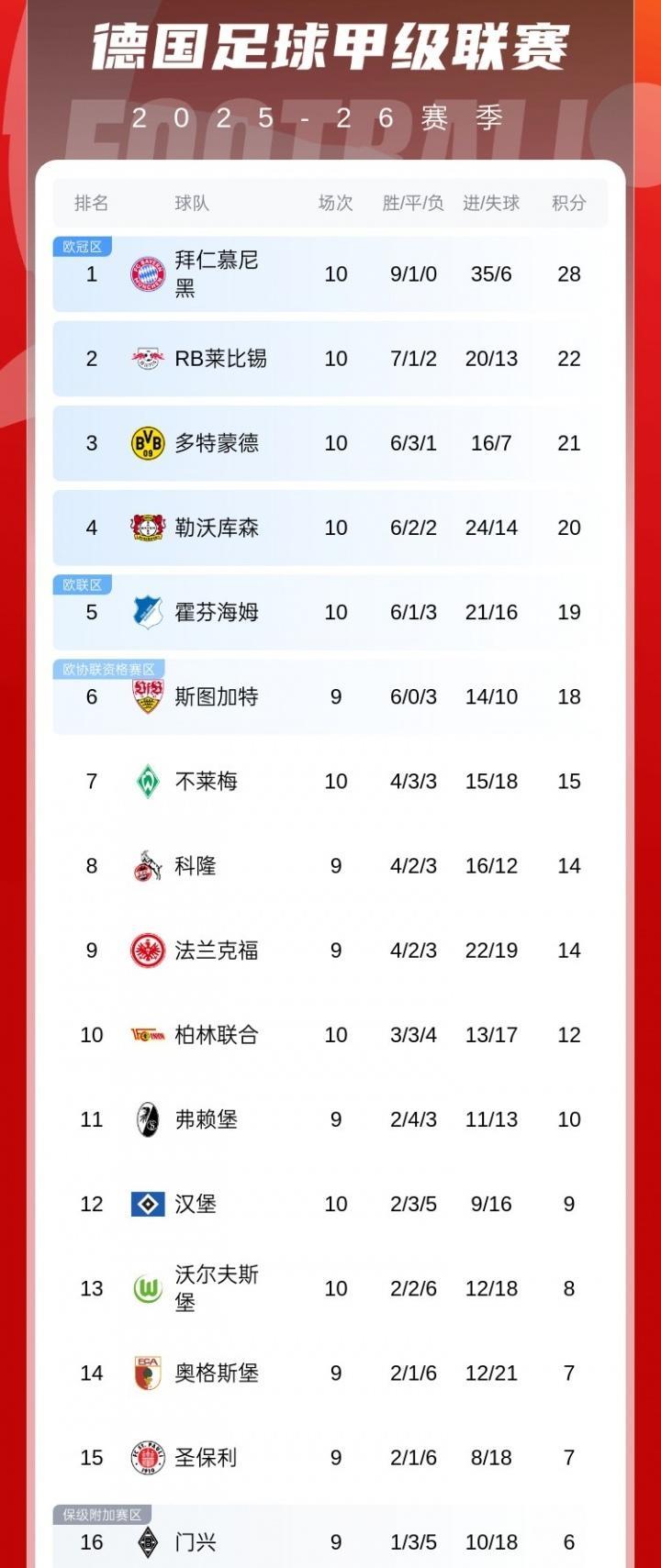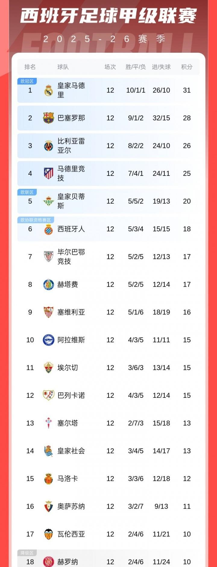 五大联赛第11周综述 随着巴萨4-2塞尔塔、大巴黎3-2绝杀里昂、国米2-0拉齐奥,国家队比赛日前的最后一轮比赛全部结束,来看具体赛果和排名! 英超方面阿森纳客场2-2战平桑德兰终结连胜脚步,依旧以四分领跑积分榜,曼城主场3-0完胜利物浦升至次席,切尔西3-0狼队排名第三,桑德兰第四,曼联、热刺、维拉、利物浦、伯恩茅斯五队同积18分排在五到九名! 西甲这边皇马客场0-0和巴列卡诺握手言和,巴萨客场4-2塞尔塔落后皇马三分,比利亚雷亚尔第三、马竞第四、皇家贝蒂斯第五! 意甲国米2-0拉齐奥升至积分榜第一,那不勒斯客场翻车0-3不敌博洛尼亚落到第四,罗马赢球后和国米同分位居第二,米兰第三、尤文图斯第六! 德甲班霸拜仁慕尼黑在客场2-2绝平柏林联合,开赛16连胜的记录就此终结,莱比锡红牛客场1-3不敌霍芬海姆仍排名第二,落后拜仁六分,大黄蜂客场被汉堡逼平位居第三,药厂主场6球大胜升至第五! 最后看法甲,大巴黎客场3-2绝杀里昂,马赛3-0布雷斯特排名第二,郎斯第三、斯特拉斯堡第四、里尔第五!