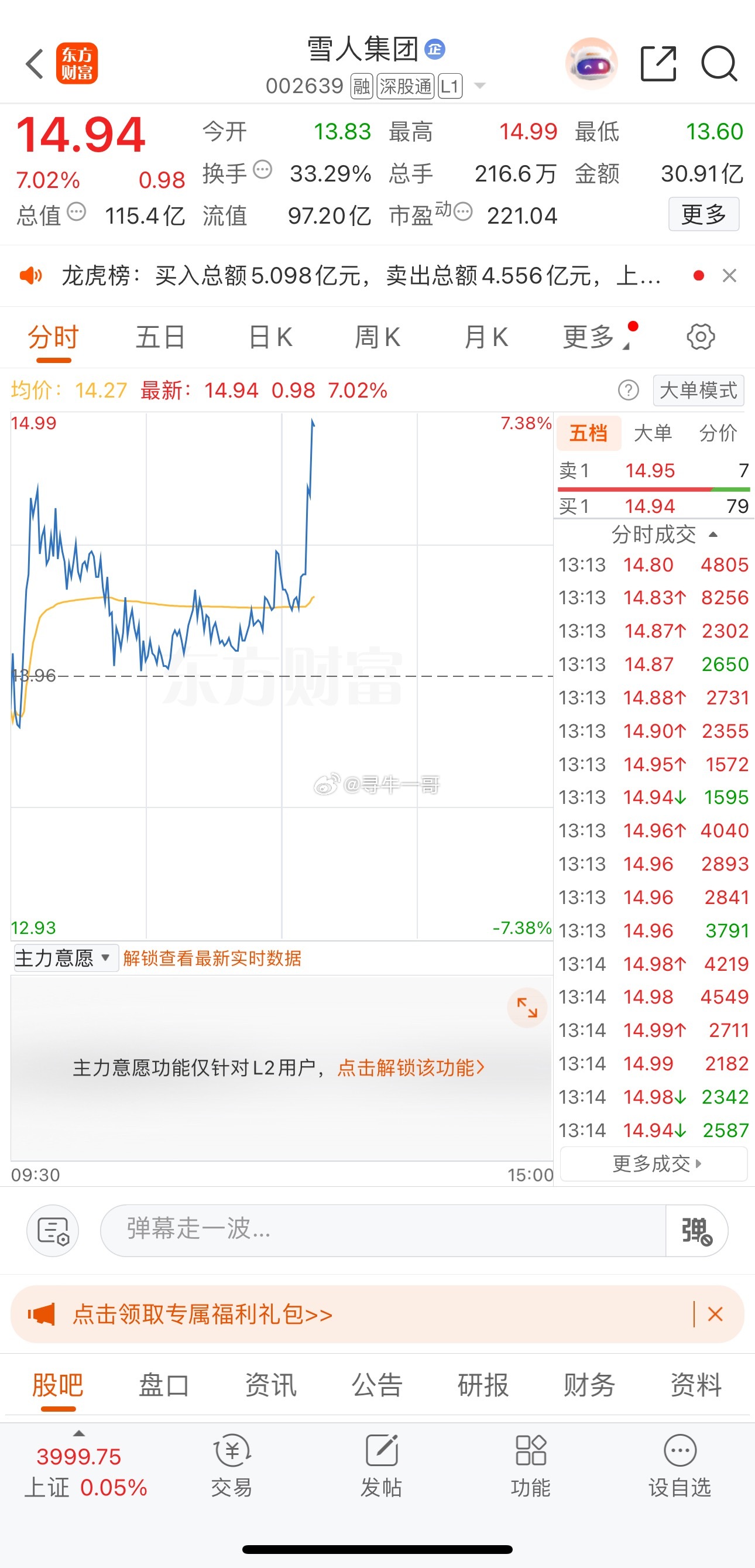 我若拿出V+订阅雪人集团 002639,阁下应如何应对?今天强势拉升7个点!共获