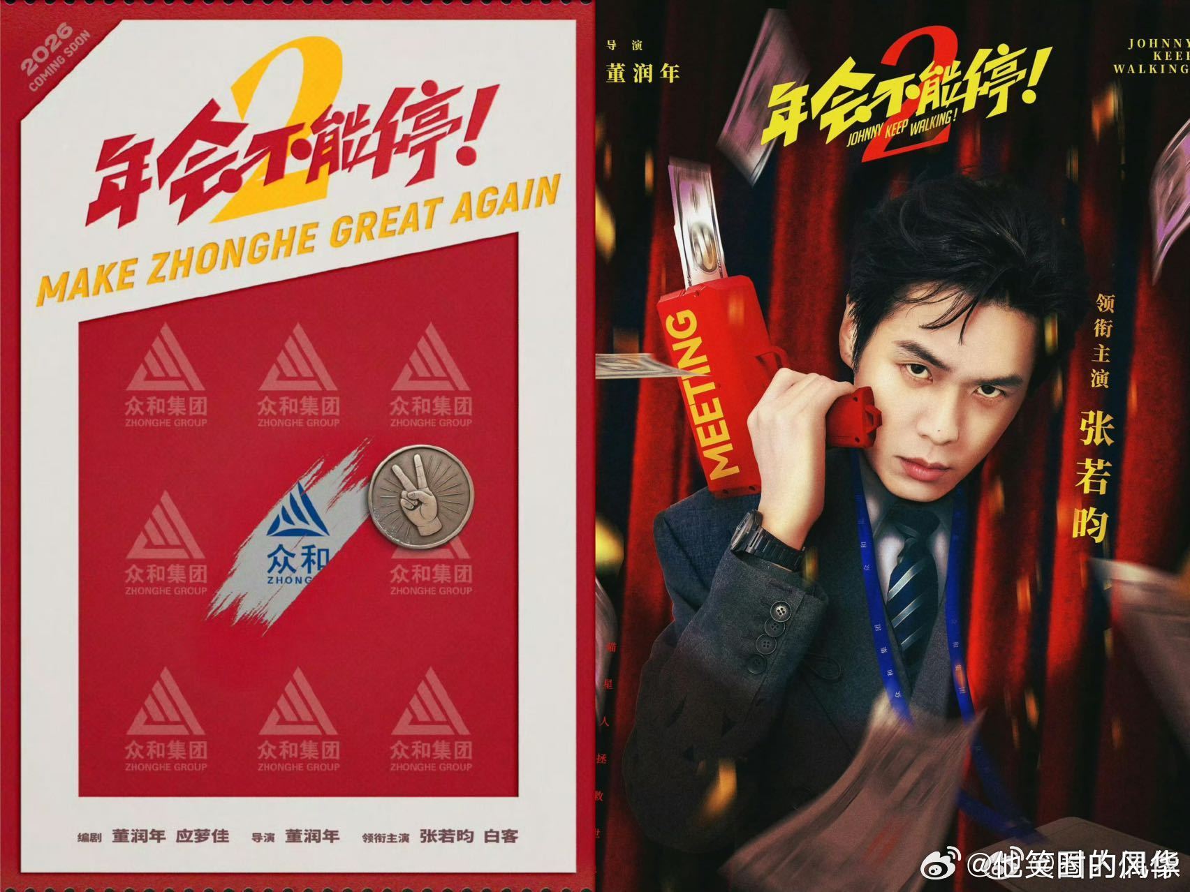 张若昀角色宇宙来新人了 谁懂这种角色反差的快乐!张若昀从权谋大佬范闲,变身《年会不能停2》众和集团打工人刘奔,搭档原班底+白客,刮刮乐海报藏职场新篇,喜剧模式全开,打工人DNA狠狠动了~