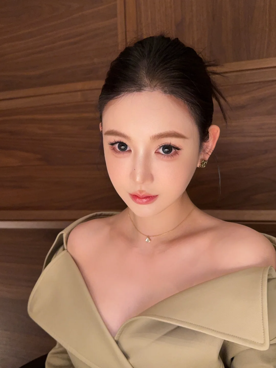 来拍照了 我的日常大光明发型贴头皮 吃饭拍照 尝试一个新look 我的ootd大光明 把头发梳上去