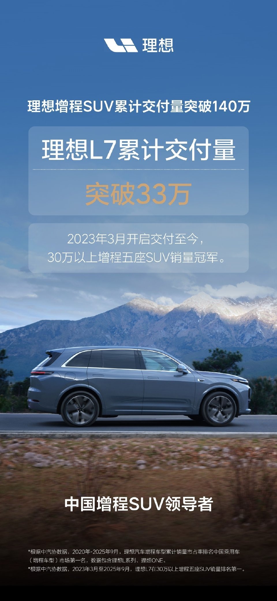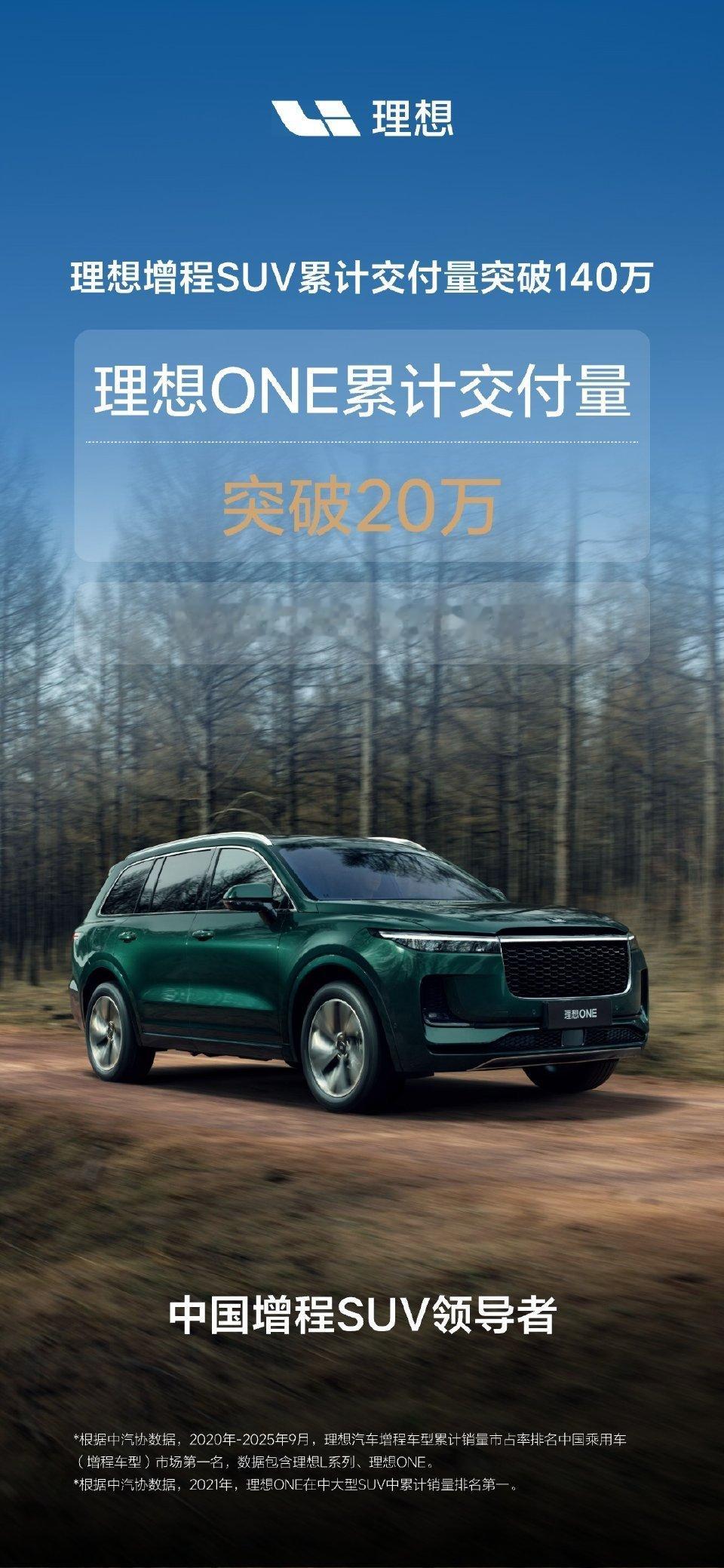 恭喜理想增程SUV累计交付突破140万!理想汽车理想L6理想L7理想L8理想L9
