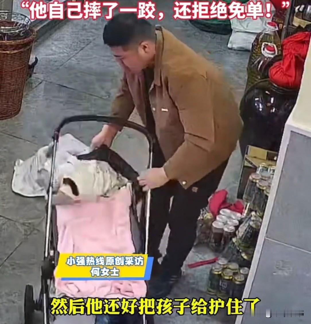 安徽一饭店,店主见米饭不够,就去隔壁借米,想着很快回来,把4个月大的娃放推车里。可没走一会儿,推车突然往后倒,娃眼看就要头朝下摔下来。 11月6日,正是中午时分,安徽六安一夫妻饭店忙得热火朝天。 油烟机嗡嗡作响,老板在厨房颠勺翻炒,火苗舔舐着锅底,香味顺着油烟飘满整个厅堂; 老板娘系着沾了油星的围裙,端着刚炒好的青椒肉丝,脚步轻快地穿梭在桌椅间,脸上挂着歉意的笑:“各位稍等,菜马上就齐!” 忙到半途,老板娘掀开米桶盖子一看,心里咯噔一下——米饭只剩浅浅一层,不够给刚入座的两桌顾客盛了。 她探头冲厨房喊:“老公,米不够了,我去隔壁借点,马上回来!” 老板头也没抬地应着:“快去快回,这边菜快炒好了!” 老板娘瞥了眼墙角的婴儿车,四个月大的儿子正睁着圆溜溜的眼睛,小手攥着拨浪鼓晃悠,乖巧得很。 她想着隔壁店就几步路,一来一回顶多两分钟,便俯身捏了捏宝宝的脸蛋:“乖宝,妈妈去去就回,你在这儿等会儿哦。”说完,顺手将婴儿车往墙角挪了挪,转身快步出了店门。 可她刚走,店里的喧闹声突然让宝宝没了安全感。原本安静的小家伙瘪了瘪嘴,开始小声哼唧,接着越哭越凶,小身子在推车里扭来扭去。 这推车是辆平衡车,经他这么一挣扎,底部突然失去平衡,整个车子开始往后翻倒。 车里的宝宝头朝下,小小的身体顺着惯性往地面下坠。 不远处,正低头吃饭的男子听见婴儿的哭闹声,抬头看了一眼,心脏瞬间提到了嗓子眼。 他来不及多想,手里的碗筷“啪”地拍在桌上,整个人像离弦的箭一样冲了过去。 他跨越过道时几乎是飞扑上前,眼睛死死盯着下坠的宝宝,毫不犹豫地伸出双手。 一手扯住车子,一手用手托住宝宝的脑袋,身体瞬间失去平衡,整个人扑倒到地面,嘴巴瞬间磕出了血。 但他顾不上自己,连忙把怀里的宝宝扶起来,小心翼翼地托着孩子的头,低声安慰:“宝宝不怕,不怕啊,叔叔在呢。” 小家伙受了惊,刚才的停顿后又放声大哭,小手紧紧攥着男子的衣角。 男子轻轻拍着他的后背,动作温柔得不像话,眼神里满是疼惜,直到宝宝的哭声渐渐小了下去,他才松了口气,低头检查孩子有没有受伤。 老板娘抱着借来的米,刚推开饭店门,一眼就瞥见墙角空荡荡的婴儿车,心瞬间沉到了谷底。“我的娃呢?” 她失声喊道,手里的米袋“啪”地掉在地上,大米撒了一地。 男子听见声音,连忙抱着宝宝走过去,轻声说:“老板娘,你别慌,孩子在这儿呢,没事。” 老板娘连忙冲过去接过宝宝,确认孩子没受伤后,才抬头看向男子。 “大姐,你刚走没多久,孩子哭着挣扎,推车就倒了,我刚好看见,就顺手接了一下。” 男子轻声解释,嘴角的伤口一扯,疼得他皱了下眉。 老板娘这才注意到他嘴角的血迹,还有额头上的红印,心里又感激又愧疚,哽咽着说: “大哥,太谢谢你了!要不是你,我家娃今天可就糟了!你这伤没事吧?要不我带你去医院看看?今天这顿饭,必须我请,你千万别跟我客气!” “不用不用,”男子连忙摆手,笑着说,“就是点小伤,擦点药就好,孩子没事比啥都强。我就是顺手帮个忙,哪能让你免单啊,吃饭付钱天经地义。” 说完,他就转身走回自己的座位,拿起纸巾擦了擦嘴角的血,继续安静地吃饭,任凭老板娘怎么劝,都不肯松口要免单。 老板娘没办法,只好先去收拾地上的米,又忙着给顾客盛饭、上菜,等她忙完手里的活,转头再找男子时,座位已经空了。 她赶紧问收银台的小妹,小妹说:“刚才那位大哥吃完,悄悄结了账才走的,说怕你再跟他推让免单的事。” 老板娘握着宝宝的小手,望着店门口,心里又暖又惋惜,眼眶红红的:“这么好的人,连名字都没问,一顿饭都没请成,真是太不应该了。” 平凡小店里的惊险一幕,诠释了人间真情。一句“顺手帮忙”,藏着最朴素的善良。这世上总有陌生人愿为你奋不顾身,印证了“远亲不如近邻”。 愿这份温暖在烟火气中永远传递!