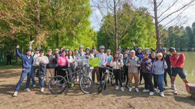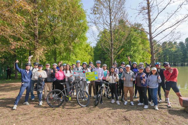 骑行队伍从青西郊野公园出发,沿大莲湖环线依次抵达西岑村山深水榭、青西灵镜与水上森林三大打卡节点。骑友们不仅沉浸式体验“湖荡岛田”的生态格局,还在各点位完成主题打卡任务,拍摄生态保护主题合影,感受自然与人文交织的沪派江南韵味。