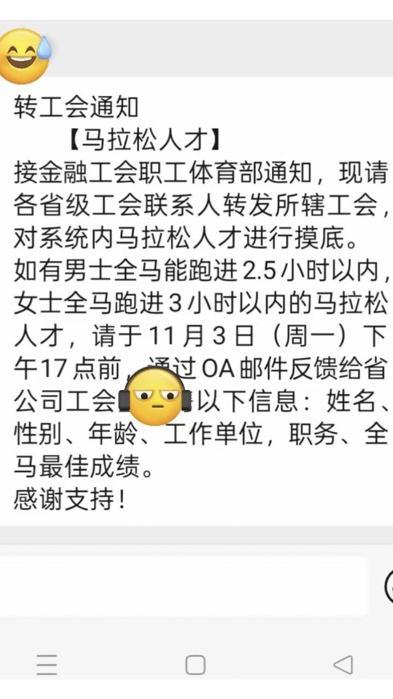这个通知让人知道金融圈跑步厉害 看到这个通知才明白为啥大学老师讲课时说要进入金融圈,首先要能完成十公里跑。原来金融圈都这么热爱跑步,也知道为啥微信里有几个银行的友友,平时微信运动自己很少能进入前十,金融圈里运动高手真不少!