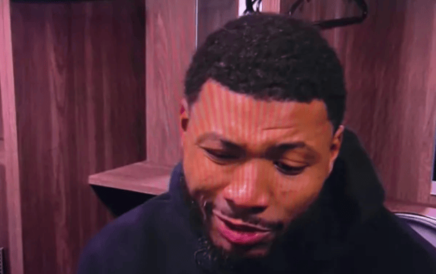 虎扑11月11日讯NBA常规赛,湖人121-111战胜黄蜂,赛后,马库斯-斯马特接受了采访,他表示上一场输给老鹰给球队敲响了警钟。